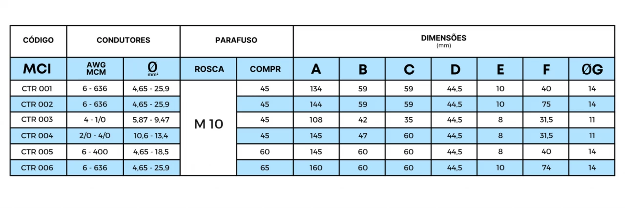 Fabricado em liga de cobre de alta resistência mecânica e condutividade elétrica.