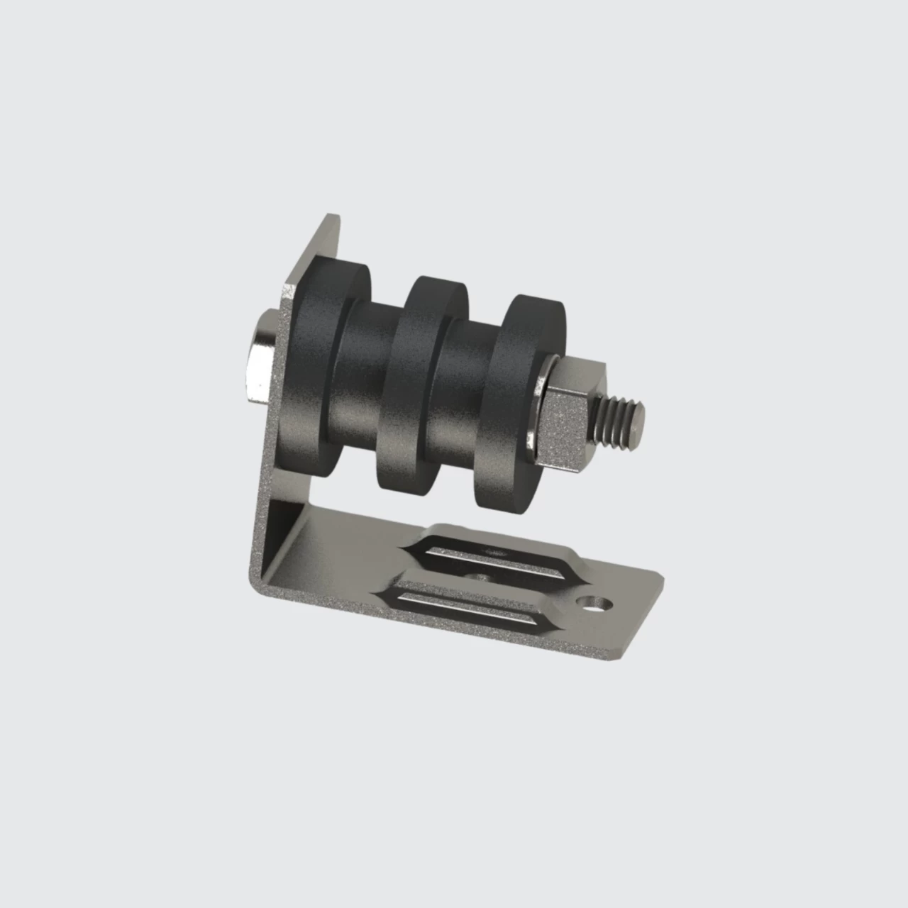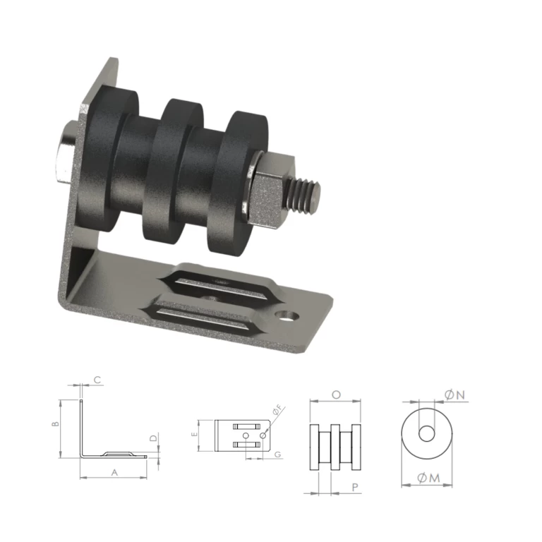 Suporte em SAE 1020 / roldana em nylon com aditivo de proteção UV e intempéries.