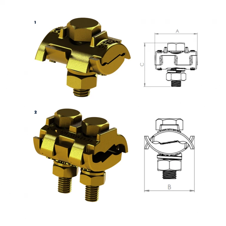 Conexão por aperto entre cabo-cabo. Indicado para conexões paralelas cobre-cobre.