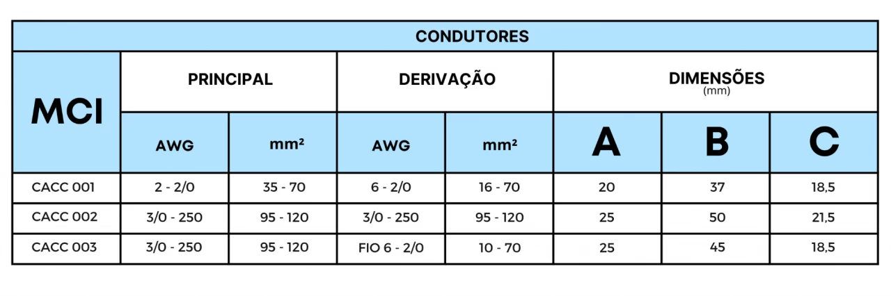 Conexão por aperto por compressão para emenda ou derivação cabo-cabo. Indicado para fios e cabos de cobre, sendo ideal para a execução de sistemas de aterramento em geral.