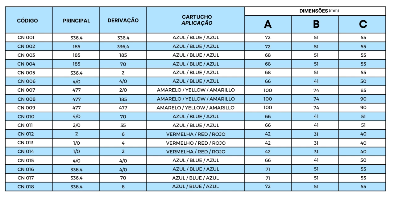 CN - CONECTOR CUNHA DE ALUMÍNIO - LINHA OTIMIZADA