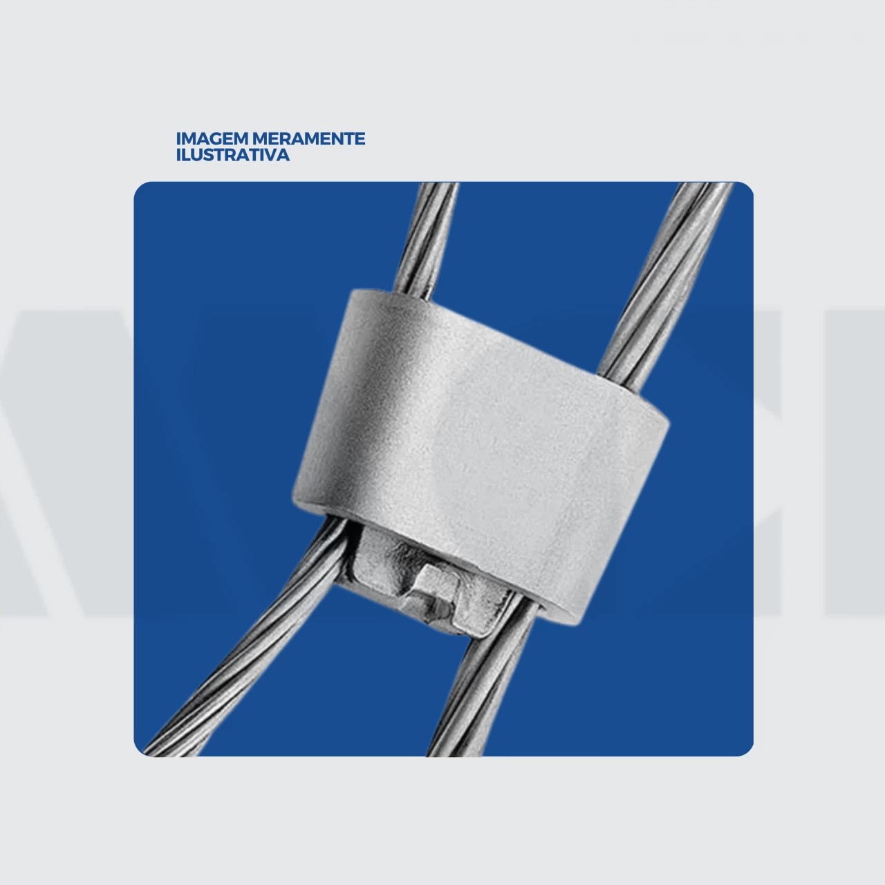Corpo fabricado em liga de alumínio extrudado de alta resistência mecânica e condutividade elétrica. Cunha fabricada em liga de alumínio fundido de alta resistência mecânica e condutividade elétrica. Fornecido com composto antióxido.