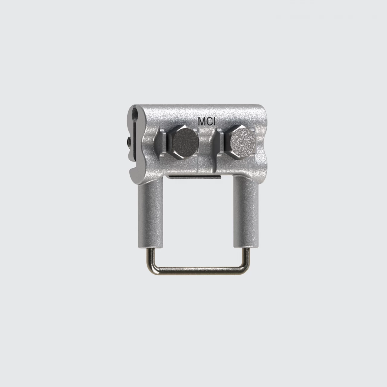 Corpo fabricado em liga de alumínio e estribo de cobre de alta condutividade elétrica e resistência mecânica, parafusos, porcas e arruelas de pressão em aço zincado eletrolítico.