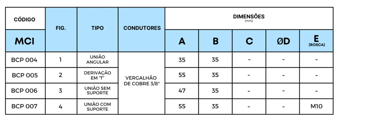 Fabricado em liga de cobre de alta condutividade elétrica e resistência mecânica.