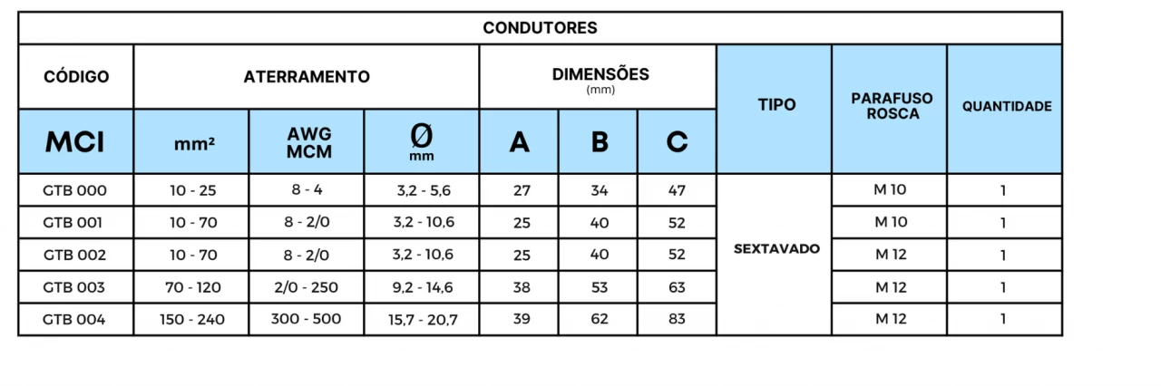Conexão por aperto entre cabo-barramento (até 7mm). Indicado para fios e cabos de cobre utilizando em sistemas de aterramento em gerais.