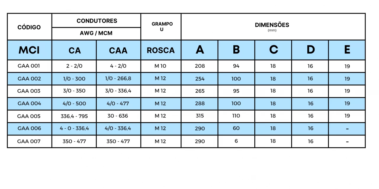 Conexão por ancoragem. Indicado para cabos de alumínio sem alma de aço.