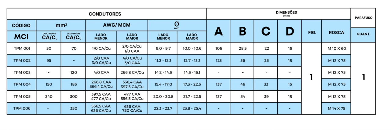 Conexão por efeito mola para terminação barramento-cabo. Indicado para cabos de alumínio em terminações nas buchas de transformadores e chave faca.