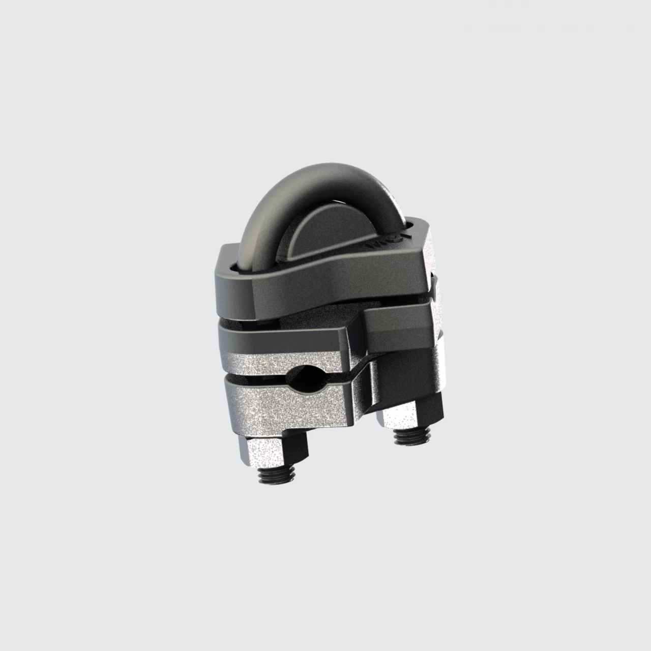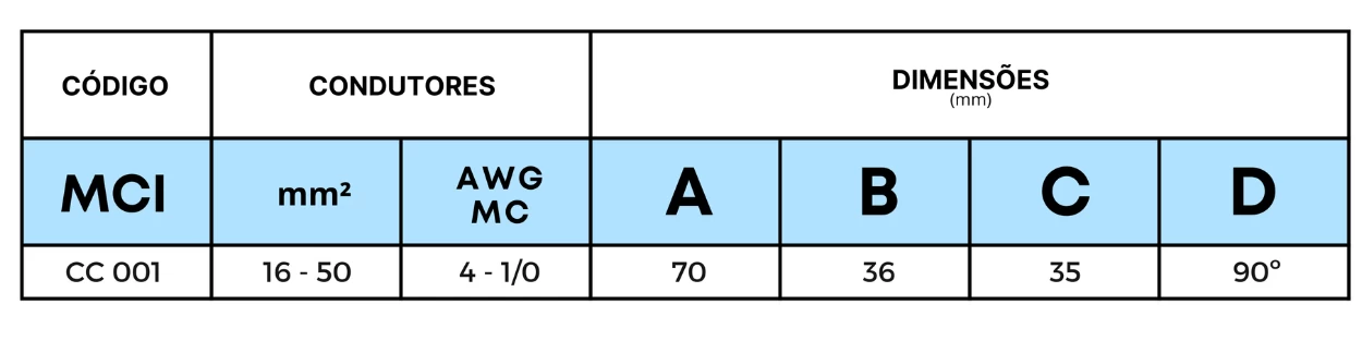 Corpo fabricado em liga de alumínio de alta condutividade e resistência mecânica, parafuso tipo “U”, porcas e arruelas de pressão em aço zincado eletrolítico.