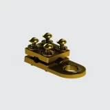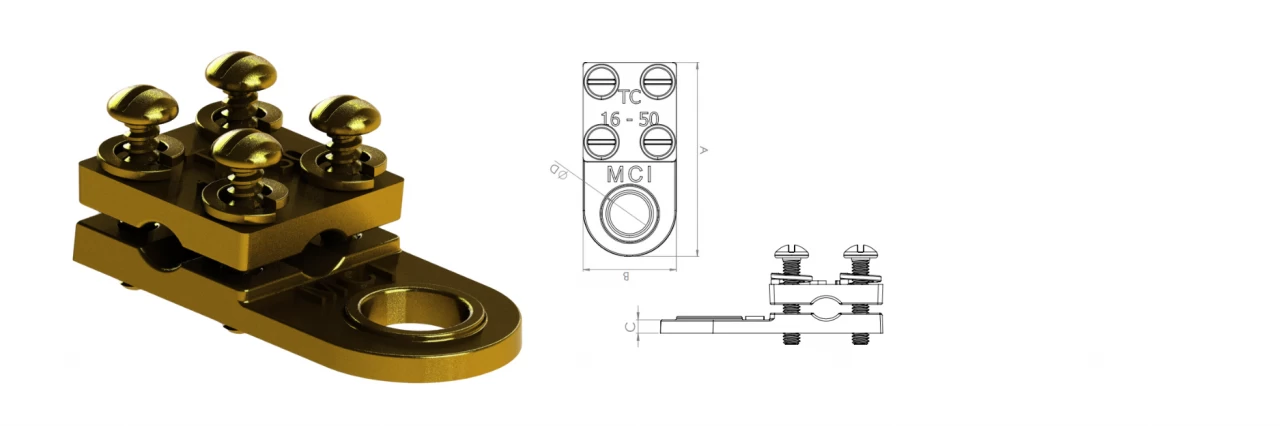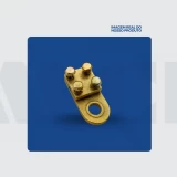 Fabricado em liga de cobre, de alta resistência mecânica, parafusos e arruelas em aço zincado eletrolítico e bicromatizado.