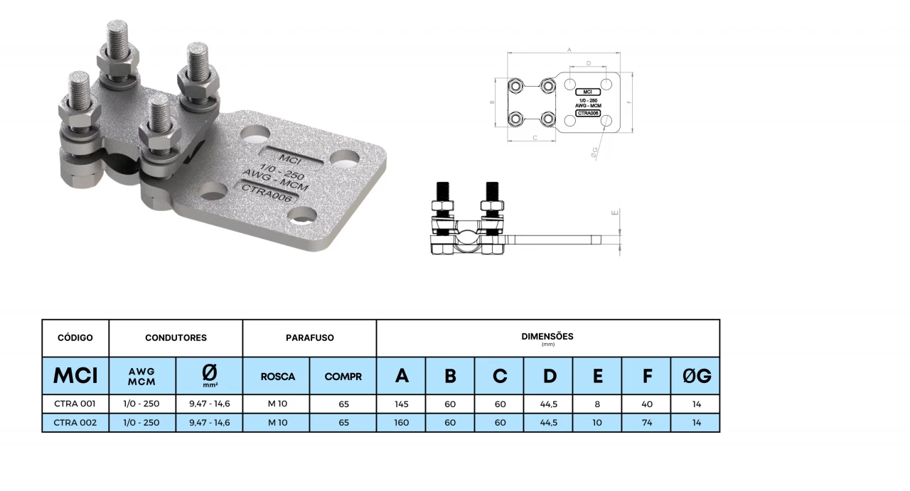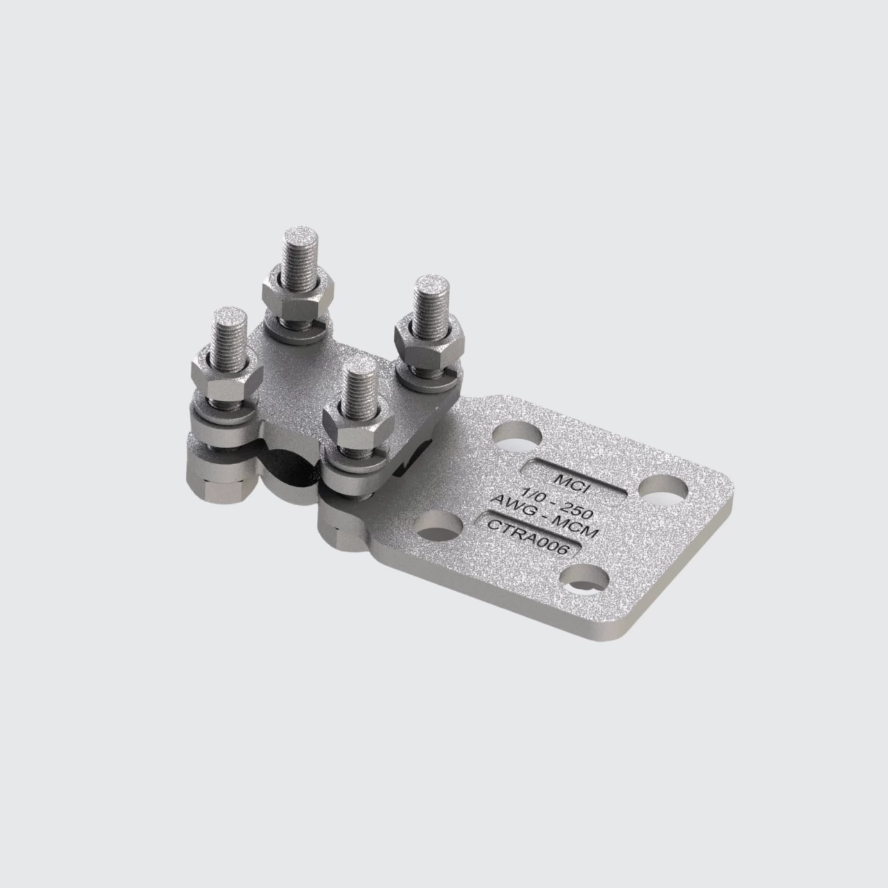 Conexão por aperto para terminação barramento-cabo. Indicado para cabos de alumínio. Opções na sapata com dois ou quatro furos padrão nema.